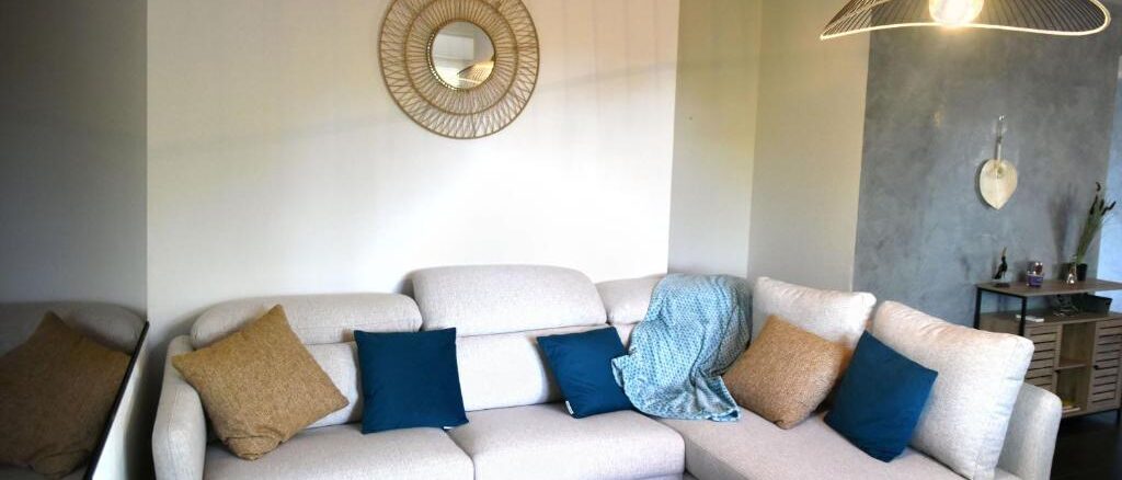 – Un canapé-lit de qualité dans le salon complète les couchages pour accueillir jusqu’à 7 personnes.